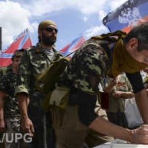 Ополчение ДНР: Министр обороны ДНР Игорь Гиркин ("Стрелок"), гражданин РФ, контролирует Славянск, командует 1-м Добровольческим батальоном, в составе которого, помимо граждан Украины, воюют граждани стран СНГ, а также рядом более мелких отрядов. Ему подчиняются отряды ополченцев, действующие в районе городов Красного Лимана, Северска, поселка Ямполь, под непосредственным командованием Стрелка ориентировочно находится до 1 тыс бойцов. Отдельные боевые акции проводятся и на территории Харьковской области. Имеет свои пункты по вербовке добровольцев в России.