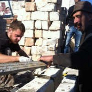 Часть ребят приступает к замешиванию смеси для кладки кирпича, остальные рушат уже непригодные остатки стены. Хозяева дома с волнением смотрят на это все. Мама, которая после смерти отца осталась за главную в доме, на турецком говорит сыну, чтобы угол не трогали – он красивый. Волонтеры спорят, что он никуда не годится.