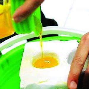 3. Подкрашенную массу заливают в форму и опускают в раствор углекислого калия, чтобы «желток» от химической реакции покрылся пленкой