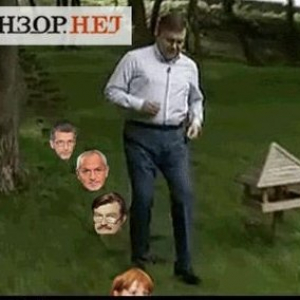 - Севастополь віддав, Бандеру і Шухевича звання Героїв України позбавив, підручники з історії переписали, українську мову на телебаченні відмінили, кінофільмів з української тематики та українською мовою не виробляємо, всі проукраїнські організації переслідуємо, День свободи відмінив, святкувати день Незалежності заборонив, за Сталіна – в тюрми… Що ще? А, скоро дозволимо старшому братику вчинити повну гуманітарну окупацію - дуже просить. Так чого йому ще треба?! Хоче, щоб я просто губернатором став? З президентів в губернатори?! Ні! Там губернаторів садять. Побуду ще президентом. Але чому ціну на газ не зменшує? Трубу хоче? Жалко віддавати – стільки металобрухту буде для єнакіївських пацанів, коли газ до Європи подаватимуь мимо України. Ні, трубу поки-що не віддам. Хіба що половинку. А може віддам?