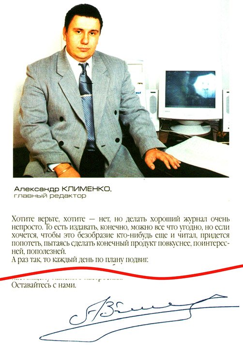 Просмотр старых номеров журнала, которые вышли под редакторством Александра, не обремененного еще грузом ответственного положения и погонами, вывел на вот такие замечательные слова, которые вышли из-под его пера, что засвидетельствовано собственноручной подписью (кстати, это было в далеком 2001 году).