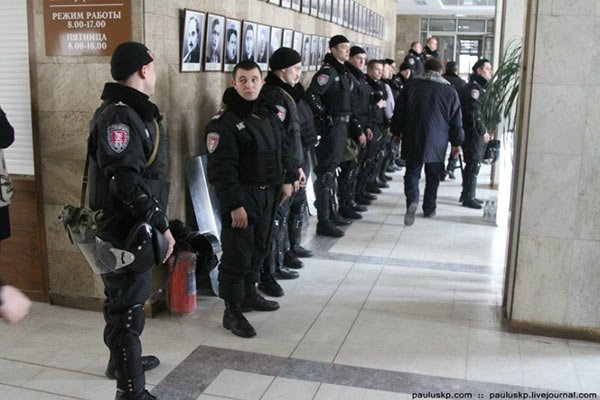По словам руководителей Донецкой области, прибывший пролетариат намерен активно помогать охранять стабильность своего региона. Кроме того, охрана облгосадминистрации была серьезно усилена и служивым людом: к подразделению внутренних войск присовокупили еще и бойцов подразделений «Грифон» и «Беркут», а также других представителей органов МВД, МЧС и медслужб.