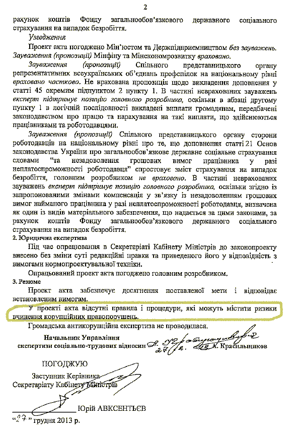 Вот небольшой пример. Пока "Беркут" пытал активистов, а возмущенные граждане захватывали по всей стране органы власти, в Минсоцполитики состряпали весьма интересный законопроект под названием «О внесении изменений в некоторые законодательные акты относительно удовлетворения денежных требований наемных работников в случае неплатежеспособности работодателя». На сегодня этот законопроект вынесен на Кабмин, до этого пройдя правовые экспертизы в том же Кабмине и Минюсте.