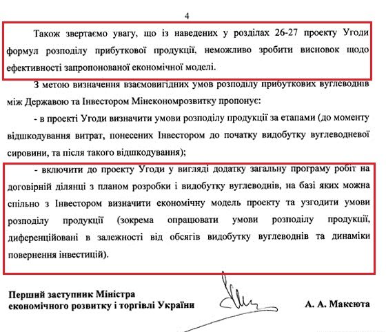 Також в проекті угоди запропонований досить складний і недосконалий алгоритм визначення часток прибуткової продукції сторін. І хоча формально в годі йдеться про 50/50 (Інвестори/Держава), це не зовсім так.