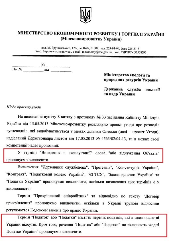 Одна з робочих версій цього документа потрапила до "Економічної правди". Напевно, це далеко не остаточний варіант. На засідання Кабміну в цю середу 12 червня винесене питання про чергове подовження процесу переговорів. Міністр екології та природних ресурсів Олег Проскуряков просить уряд надати ще 180 днів на ведення додаткових переговорів.