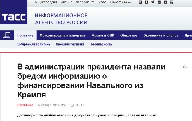 В тот же день, что и статья на LifeNews, на сайте Информационного агентства России ИТАР-ТАСС появилось опровержение этой информации из некоего загадочного источника в Кремле.