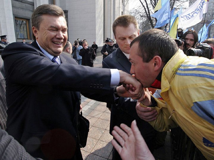 Верный холоп целует царскую руку. Фото сделано в Киеве